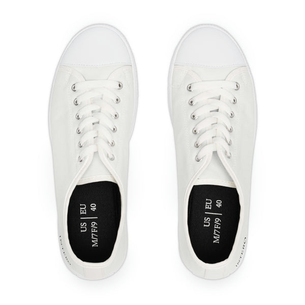 Made with breathable polyester canvas and featuring hi-poly deodorant memory foam insoles, these women's low top sneakers bear all the marks of an awesome shoe. Choose between black or white sole and laces, and enjoy the silver metal eyelets along with the lace-up closure. Add your designs and bring a bespoke staple to life.